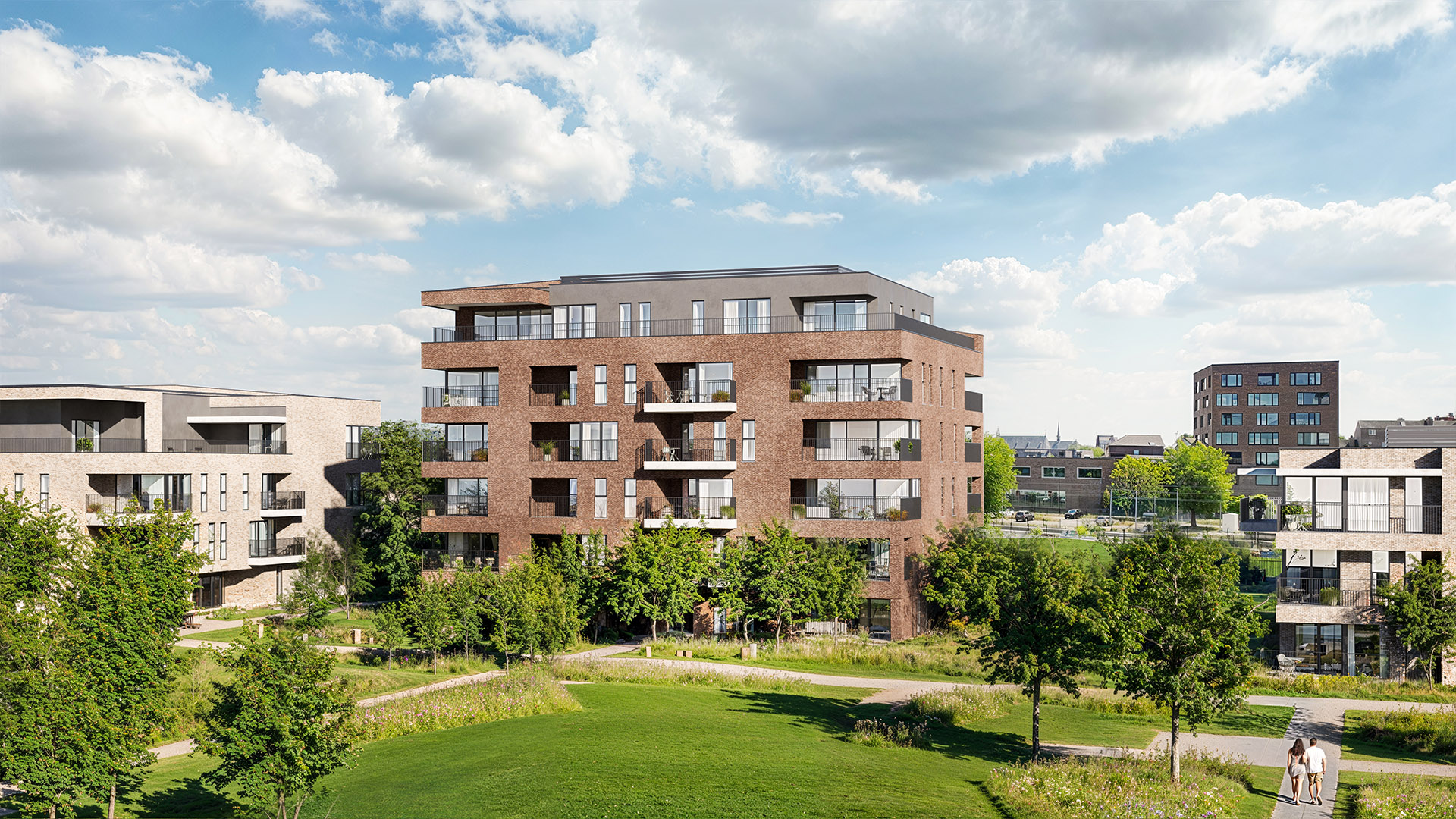 Nieuwbouwproject Boomgaarde in Sint-Truiden combineert energiezuinig wonen met hedendaagse architectuur en een groene omgeving. Privétuinen en wandelpaden brengen rust en ruimte; terrassen kijken uit over de stad én natuurgebied Volmolen.